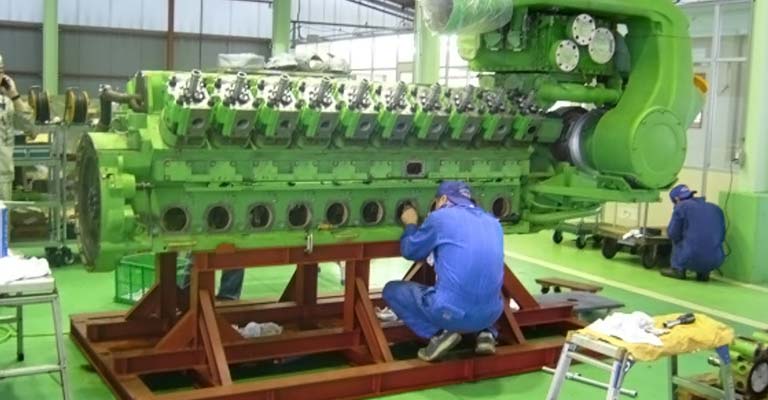 - ガスエンジンの工場内での分解整備
